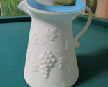 WHITE FROSTED GLASS RUFFLED BORDER BLUE GLASS INSIDE GRAPE DESIGN PITCHER JUG 7 1/2" TALL [*TEAPOTAREAS10]