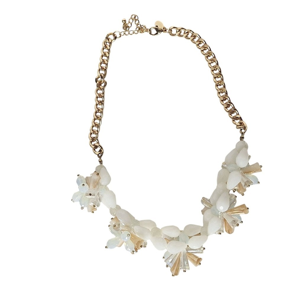 - White & Gold Chunky Beaded Floral Necklace With Adjustable Chain Womens Jewelry