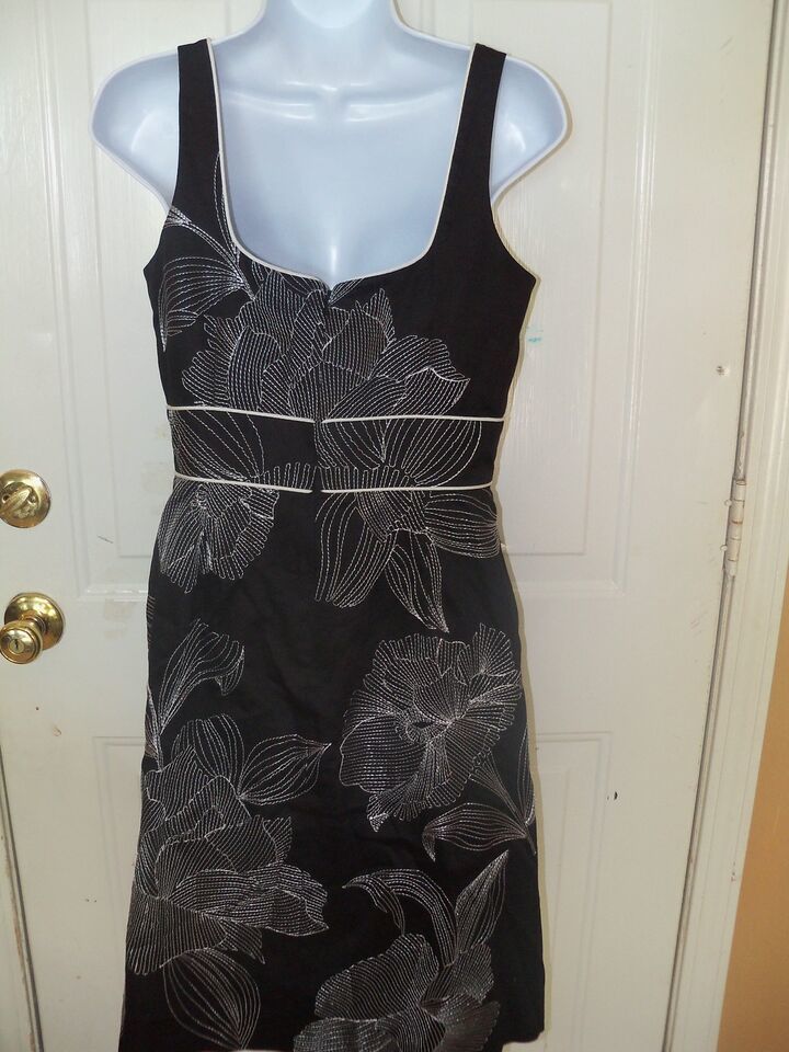 - White House Black Market Black W/White Floral Sundress Size 6 Women's EUC