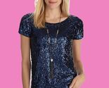 White House Black Market Classic Stretch Sequin Tee Ballet Top, Small, Navy, NWT