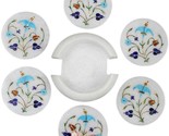 - White Marble Coaster Set Handicraft Inlay Precious Stone Floral Arts Decor E1983