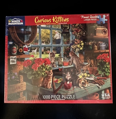 This White Mountain puzzle features 1000 pieces of fun and curiosity, perfect for any puzzle lover. Made in the USA, this puzzle showcases the adorable Curious Kittens theme, sure to bring a smile to anyone's face. The puzzle is designed for contemporary puzzle enthusiasts and is categorized under Toys Hobbies, Puzzles, and Jigsaw. The brand, White Mountain, is well-known for producing high-quality puzzles that provide hours of entertainment. This puzzle is no exception, with its unique theme and challenging level of difficulty. Get ready to put your puzzle-solving skills to the test with this Curious Kittens puzzle!