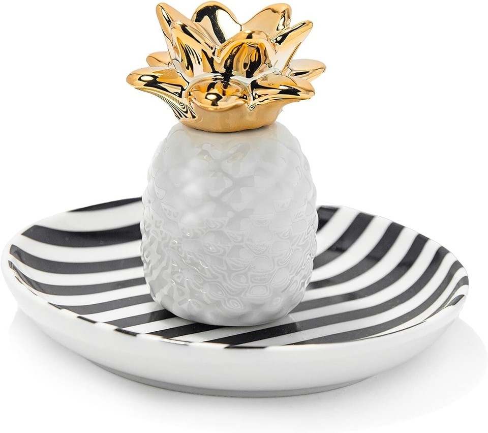 - White Pineapple Ring Holder for Jewelry, Ceramic 3.93"D x 3.93"W x 2.83"H
