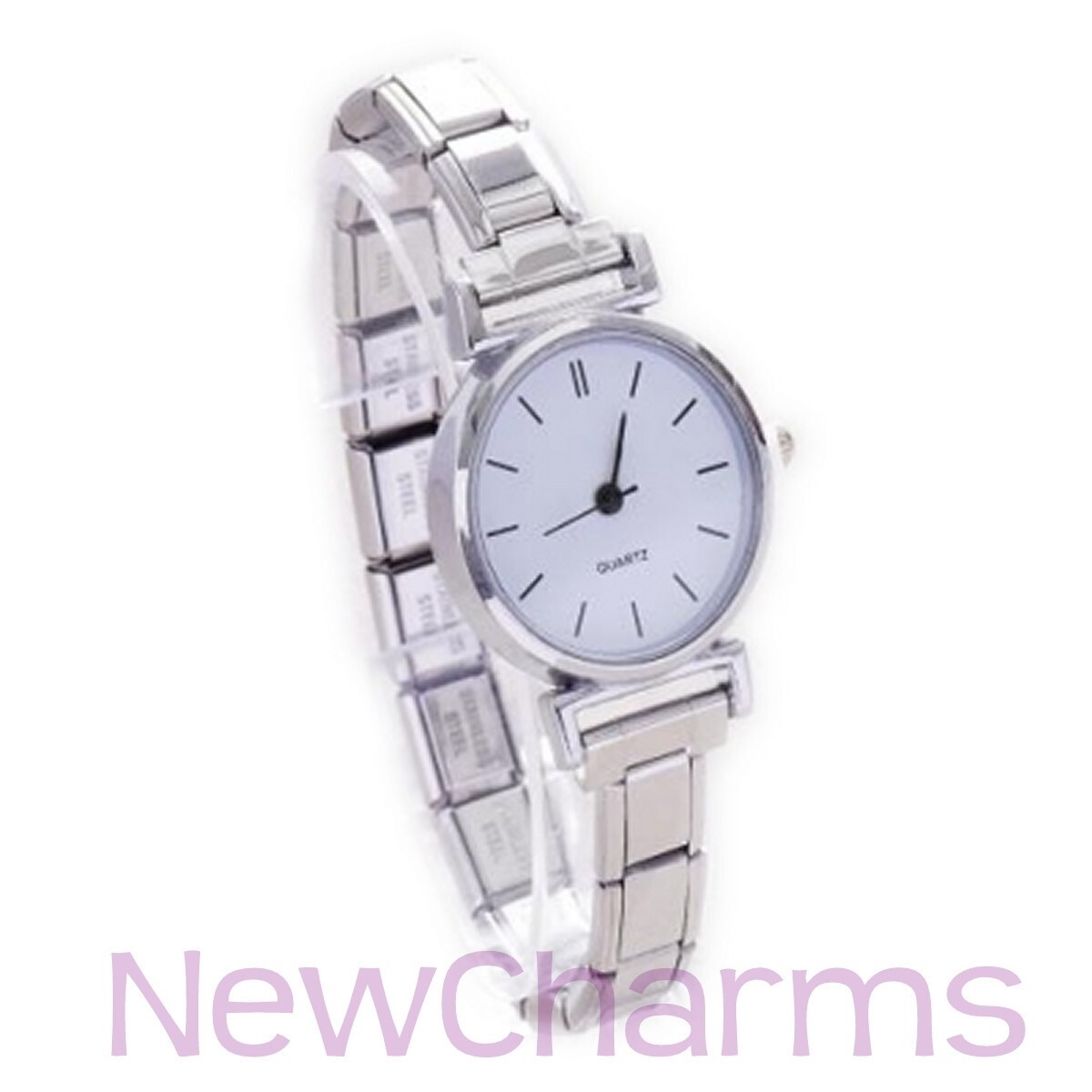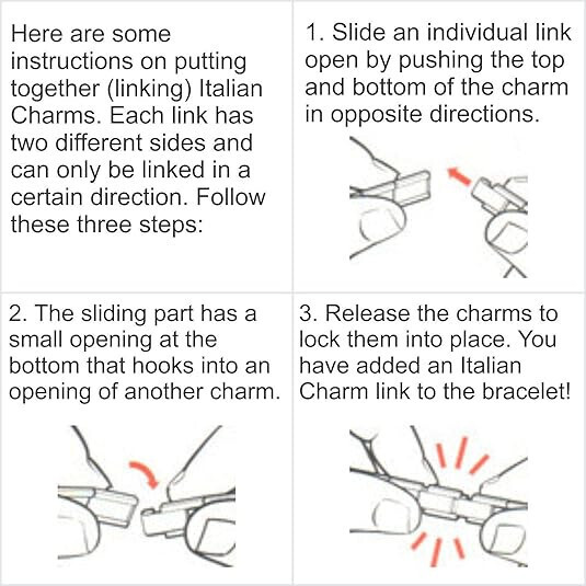 This set includes a stainless steel Italian Charm watch with full bracelet band, four cute Italian Charm links, and a charm tool so you can add and remove charms with ease. Since the charm "links" can be added and removed the watch band can be adjusted to fit any wrist, and you can customize your watch jewelry by adding designs which represent you. We have over 5000 unique designs sold separately so you can create a one of a kind bracelet. Our high quality watches combine style and function and feature quartz movement and stainless steel charms.