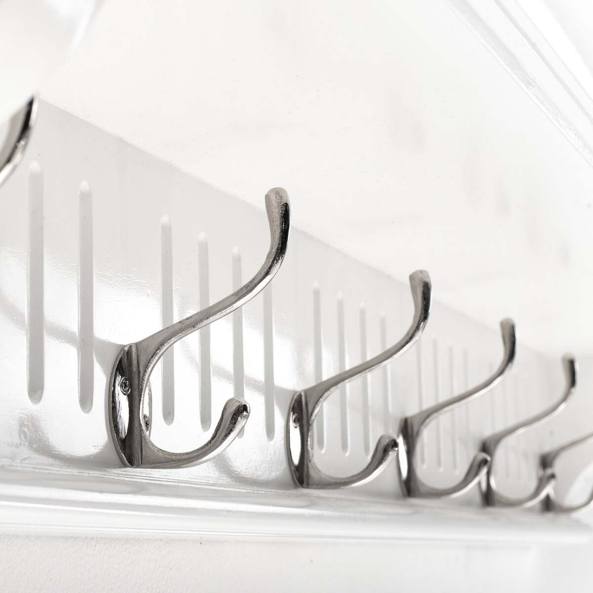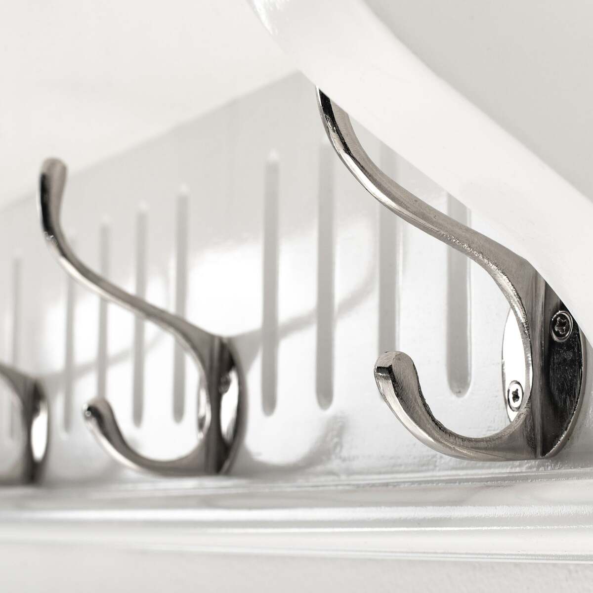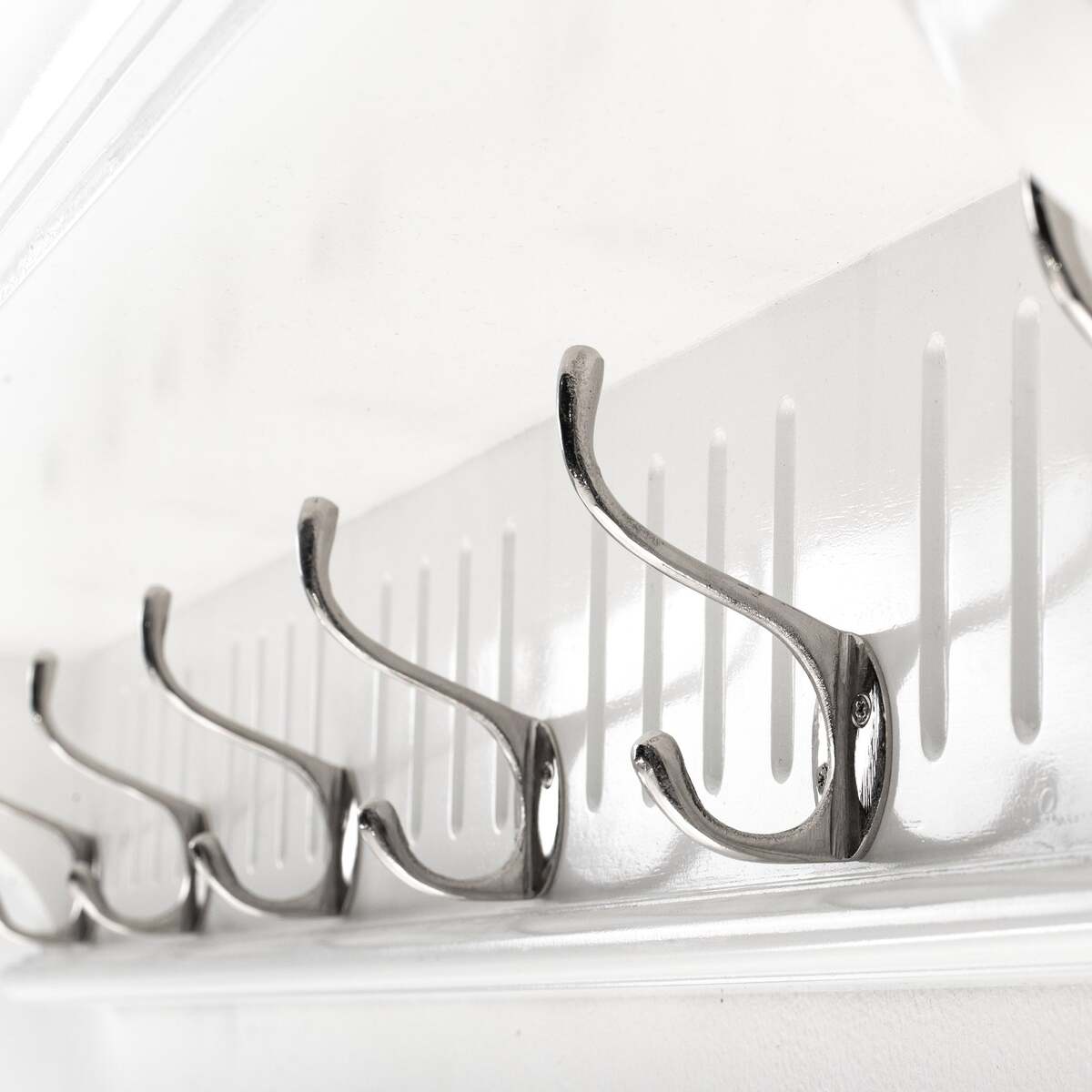 White Solid Wood 39 Inch Six Hook Wall Mount Coat Rack