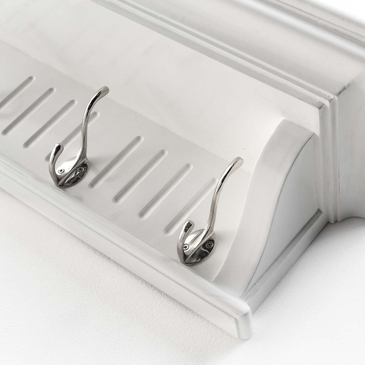 - White Solid Wood 39 Inch Six Hook Wall Mount Coat Rack