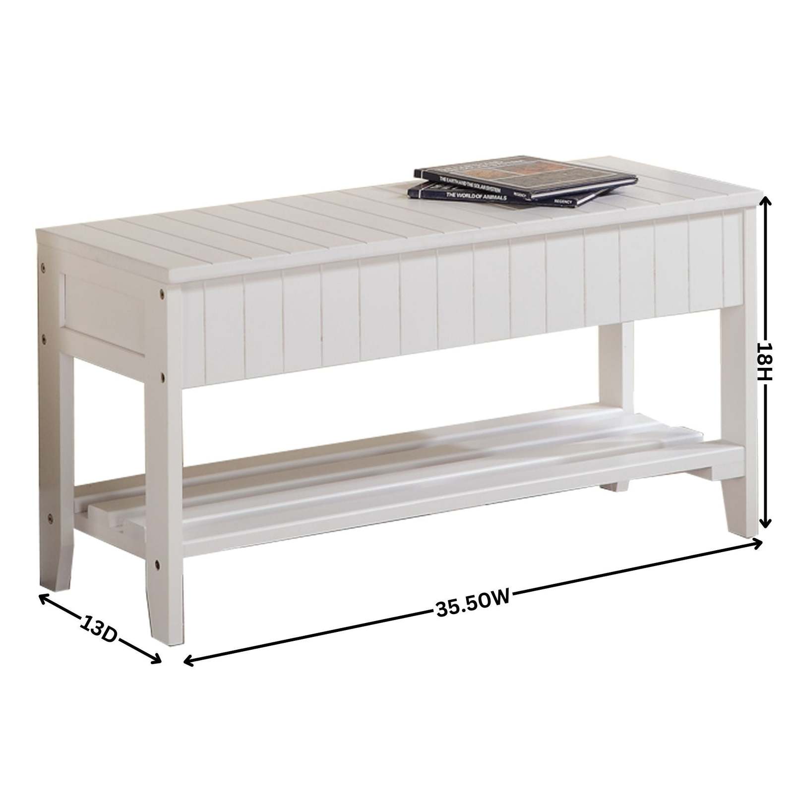 White Solid Wood Shoe Bench with Storage for Entryway