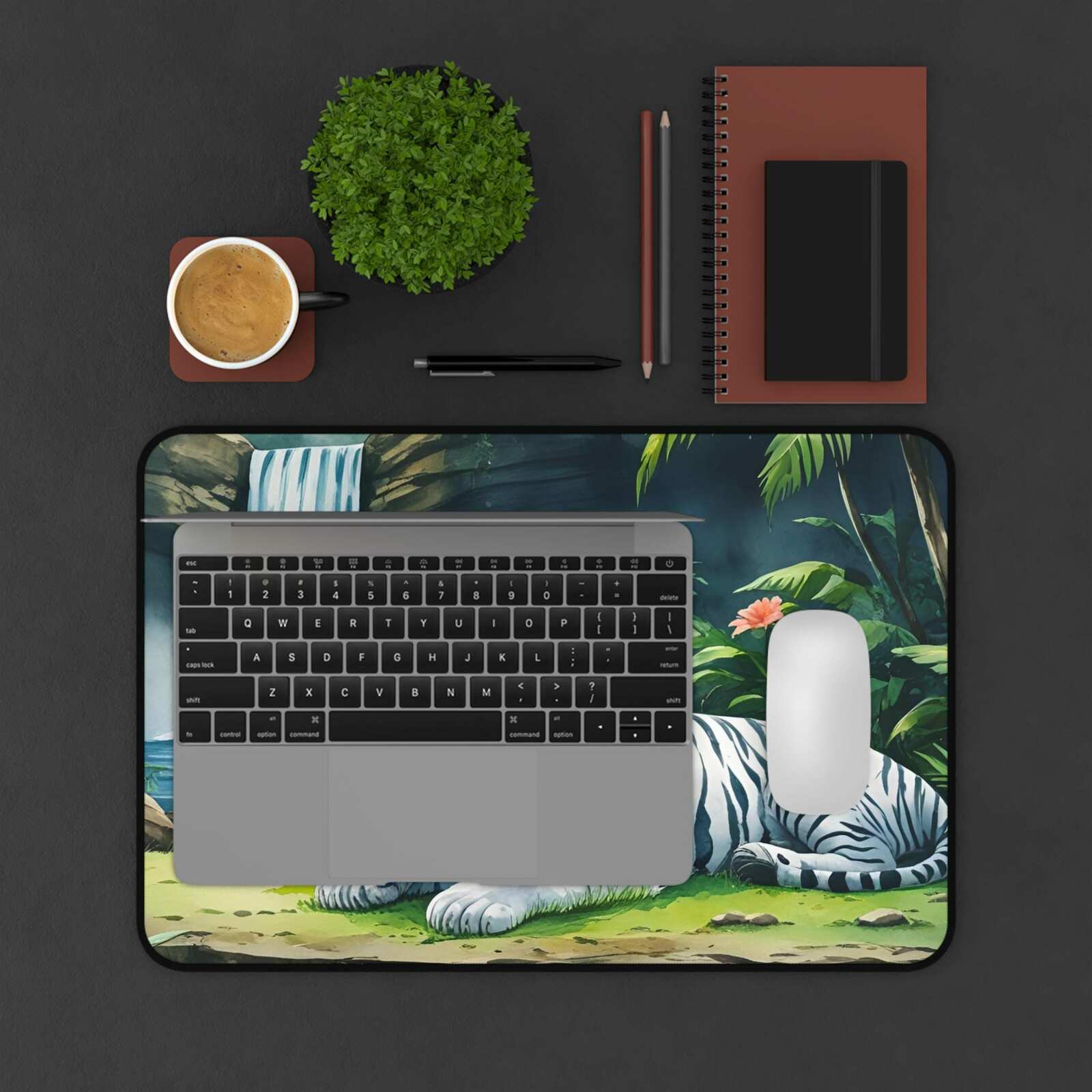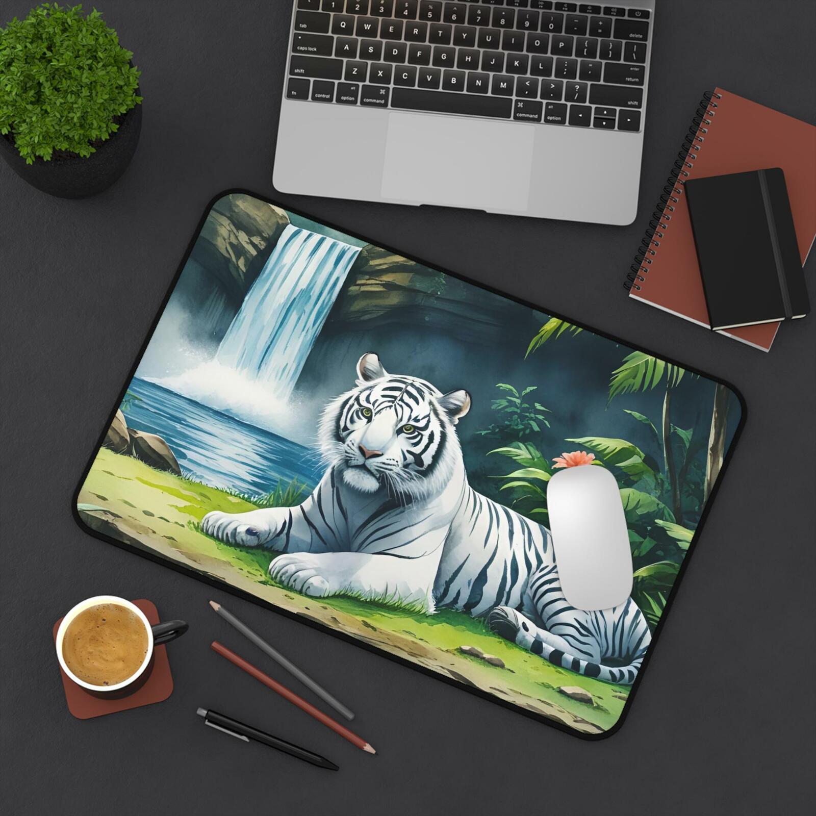 - White Tiger Desktop Mat, Nature Inspired Office Decor, Wildlife Lovers Computer