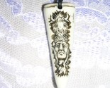 WHITE TOTEM BUFFALO HORN SHAPED PENDANT w BUFFALO & INDIAN FACE IMPRESSION
