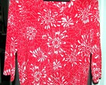 Wonderful Condition on this Ladies Stretchy Polyester Spandex Top, Size Large that is a great design and very comfortable. Has round neckline in front. It is a pullover. Washable dryable on delicate and will not shrink or draw out of shape. It looks like new.