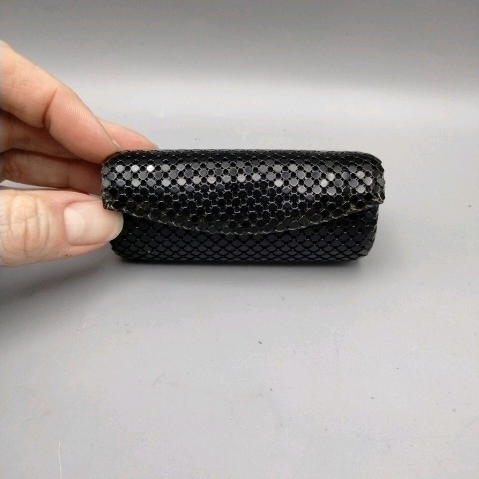 Elevate your daily essentials with the Whiting Davis Black Lipstick Case, a chic and practical accessory for any vintage enthusiast. The case features a secure snap closure and is crafted from durable mesh material, providing a sleek, timeless look that's both functional and stylish.
