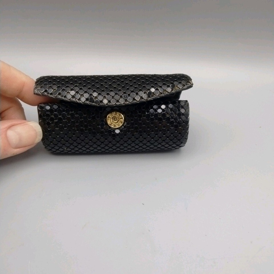 - Whiting & Davis Black Lipstick Case Snap Closure Mesh Mirror Holder