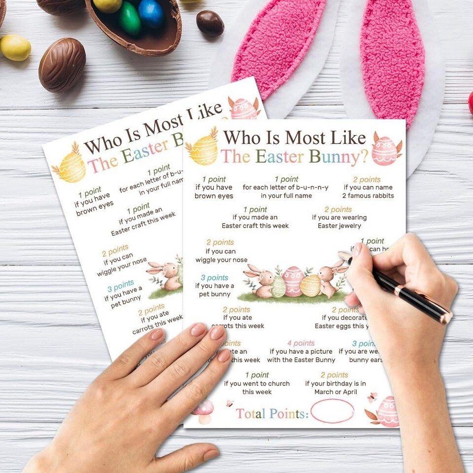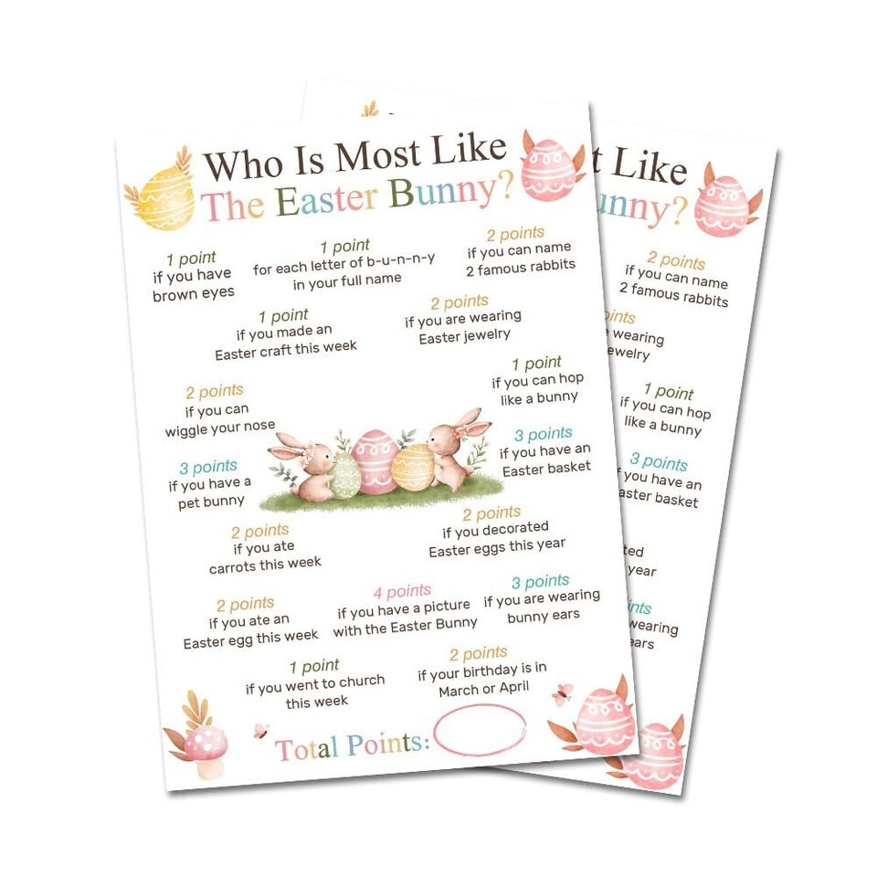 - Who Is Most Like The Easter Bunny Game Cards Set of 20 Colorful Eggs