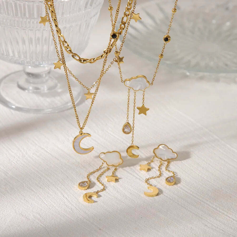 - Wholesale Jewelry French Style Simple Style Clouds Star Moon 304 Stainless Steel