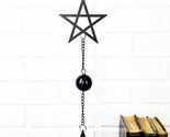 Wicca Occult Pentagram Pentacle Stars Black Coated Steel Metal Wind Chime Mobile