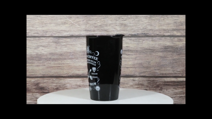 ? This Ouija Good Brew Travel Mug is made of high quality ceramic porcelain. CA Prop 65 Compliant. Color Tone May vary slightly from pictures.