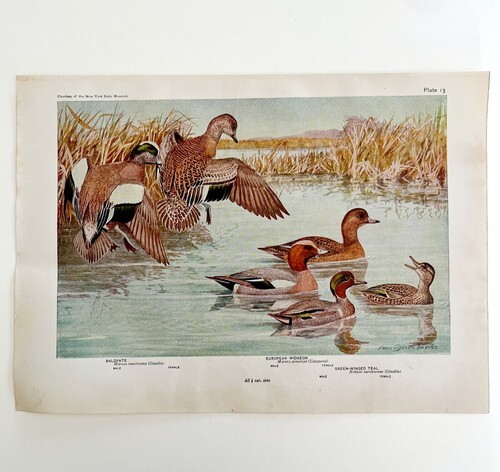 Widgeon Baldpate And Teal Duck 1936 Bird Art Lithograph Color Plate Print DWU12B