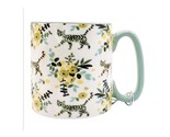 Brand new, Wild Cats Flower Bouquets 16oz Textered Ceramic Coffee Mug. Pretty mug is designed 10 Strawberry Street and is from the Bella collection, features striped wild cats , flower bouquets in warm tones of turquiose, cream, dark sage greens. Mug has a textured warped ceramic design, mug is a very faint off white color on inside as well as under the pattern, the top rim and handle are a sage green.. Measures 4" tall, 3 1/2" across the rim, 4" across the bottom, a 3 1/4" handle. Comes from a smoke free, pet free home.