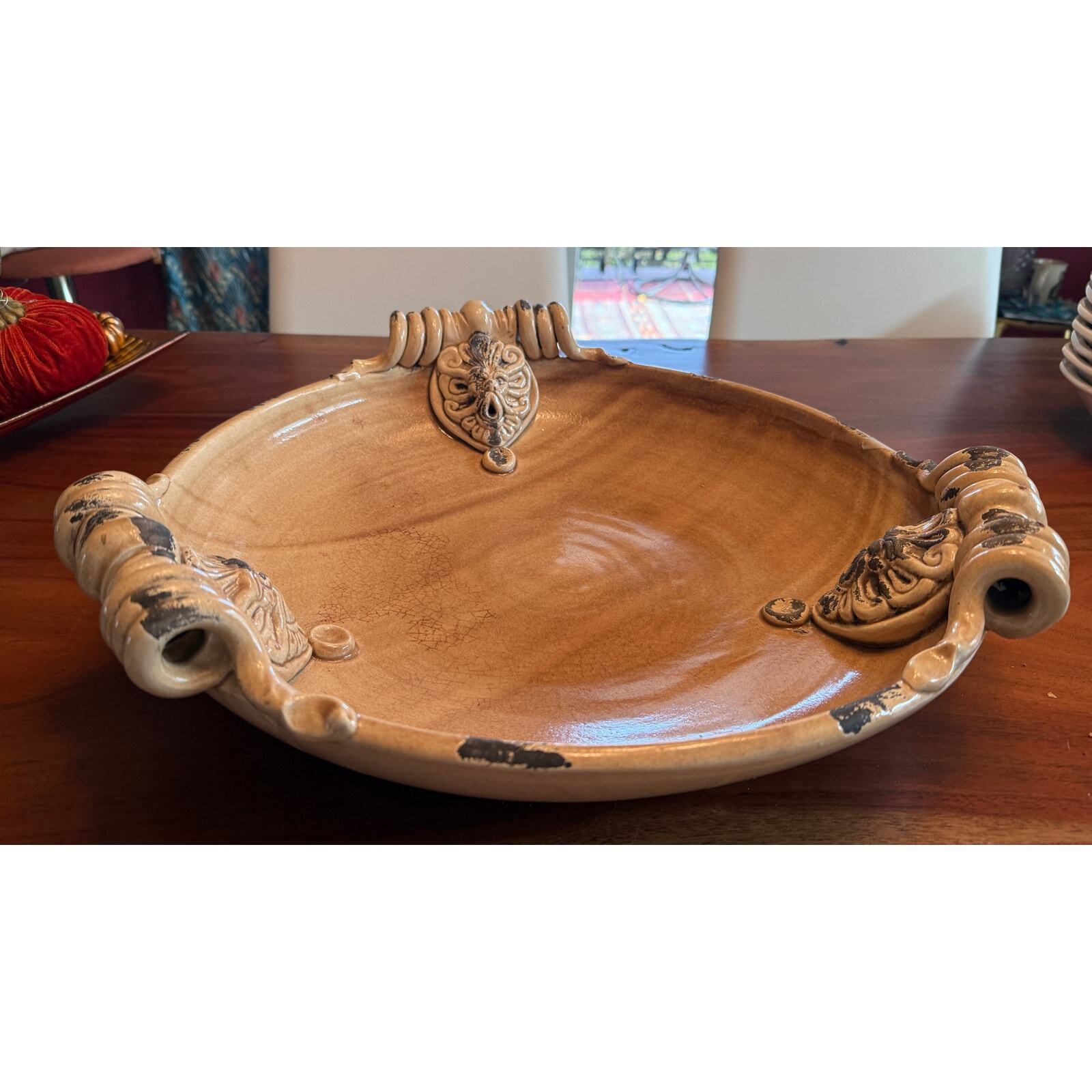 - Wild Olive Ceramic 16.5" Mushroom Serving Tray-Hand Made in Italy Lions