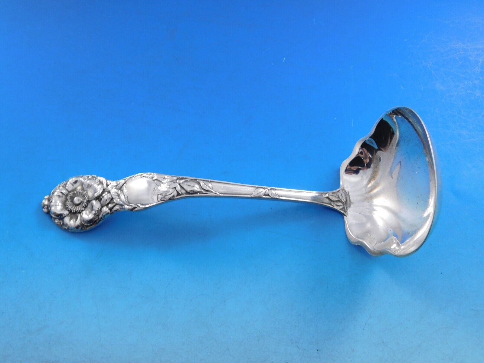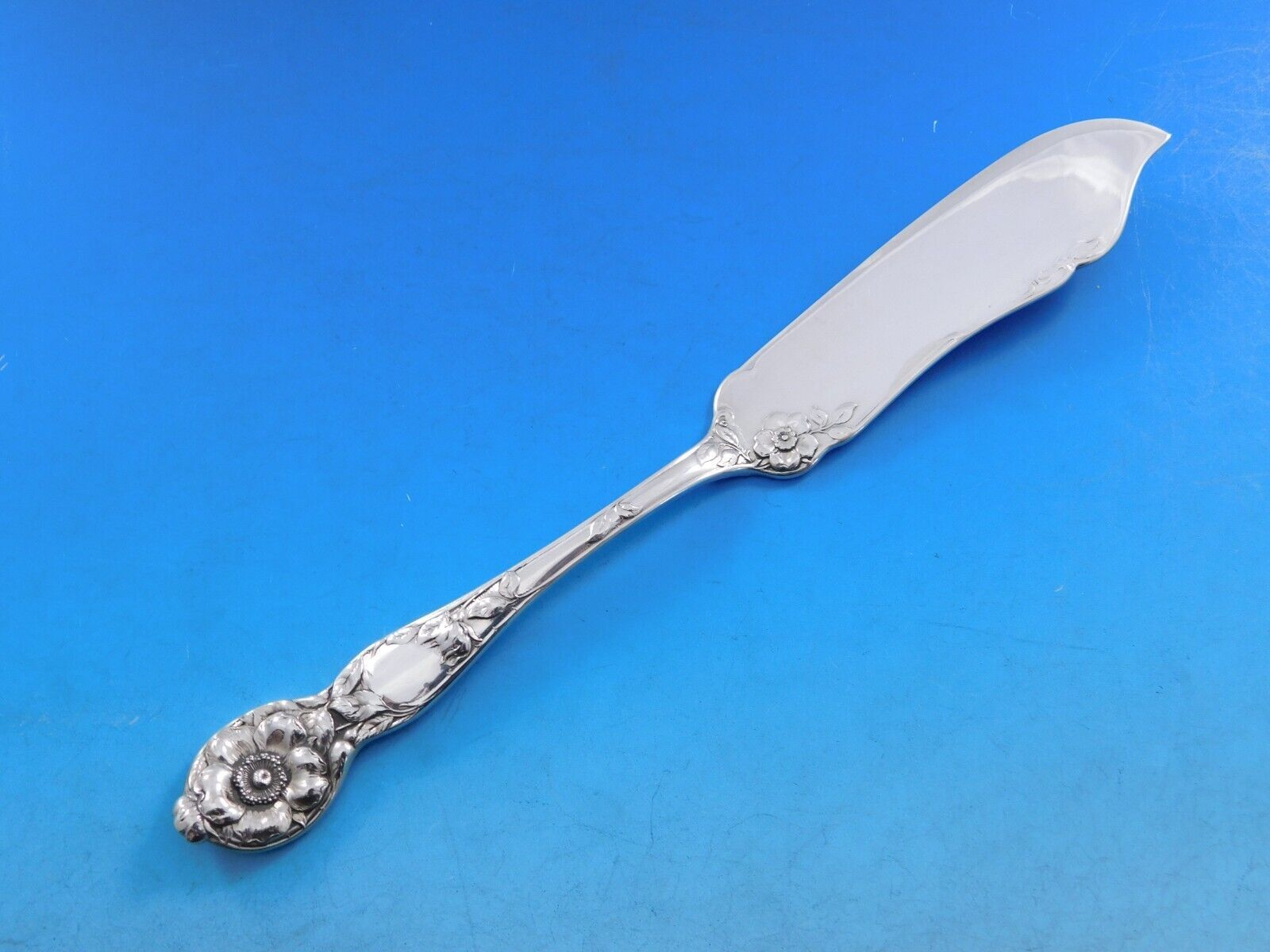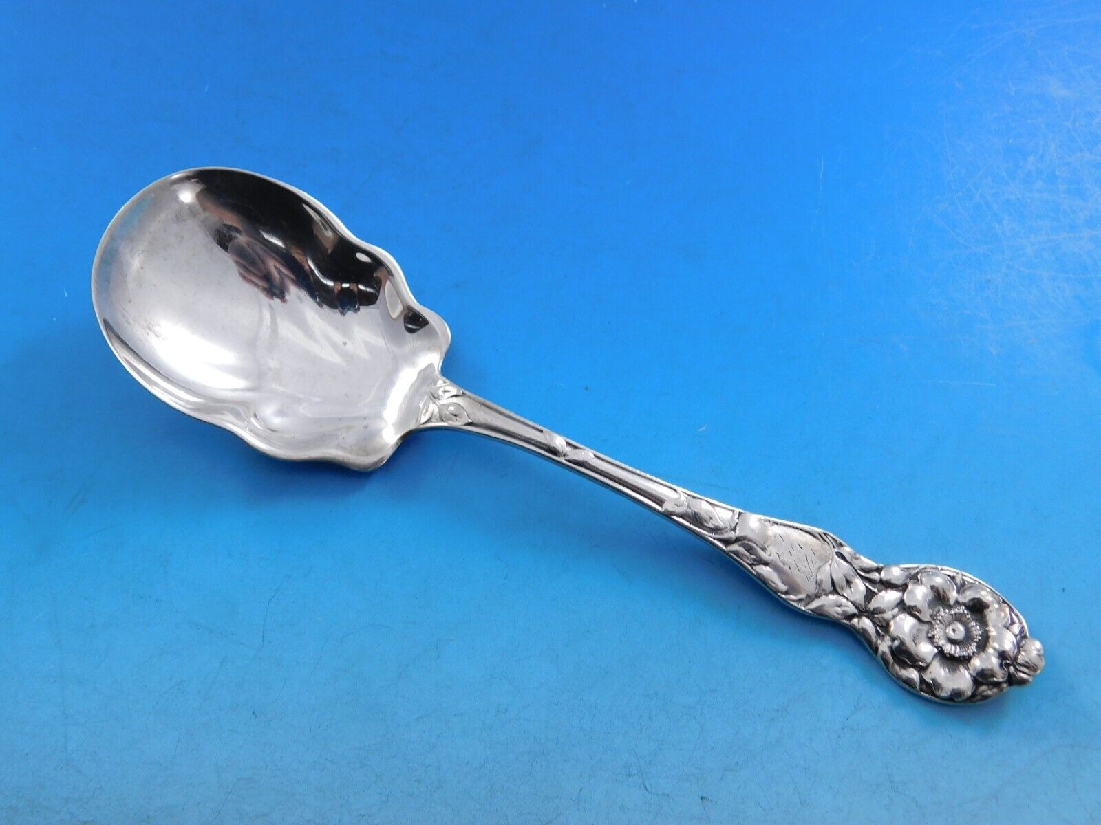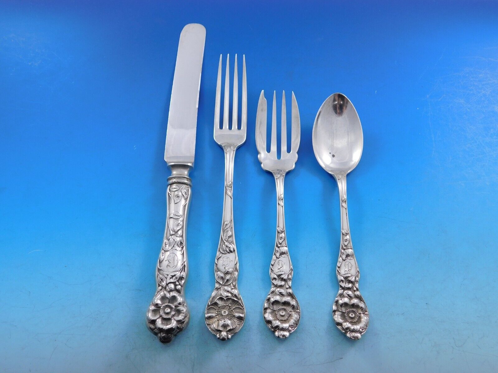 Superb Wild Rose by Watson, circa 1905, sterling silver Flatware set, 87 pieces. This rare Art Nouveau service displays fabulous crisp floral detailing. This set includes: