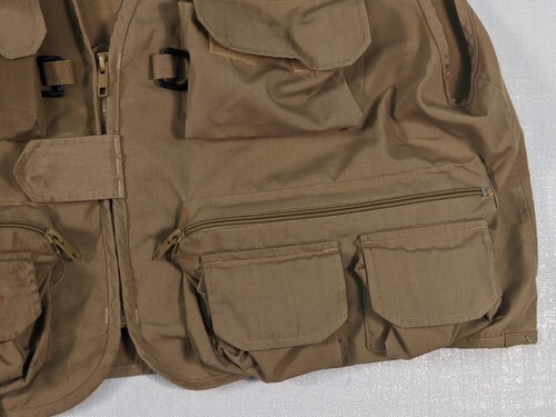 The vest is designed for men in size L, and comes in a beautiful tan color. This vest gives an avid fisherman the perfect look for a fishing trip. This vest is breathable, comfortable, and perfect for fishing enthusiasts who want to keep their essential gear close at hand.