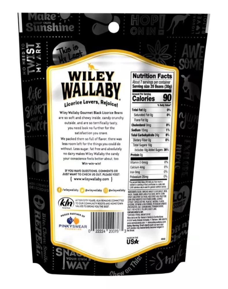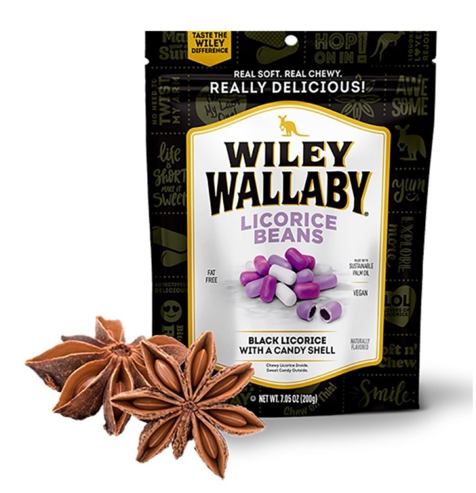 - Wiley Wallaby 120078 Black Licorice Bean with a Candy Shell Soft & Chewy 7.05oz.