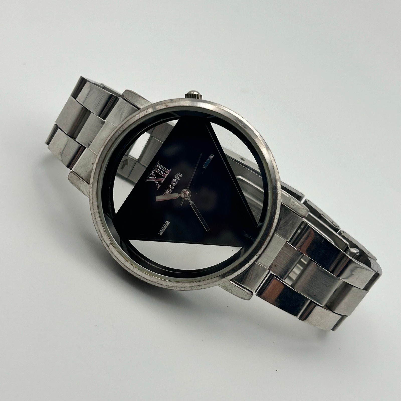 - Wilon Silver Tone Black Triangle See-through 37mm Women’s Watch New Battery