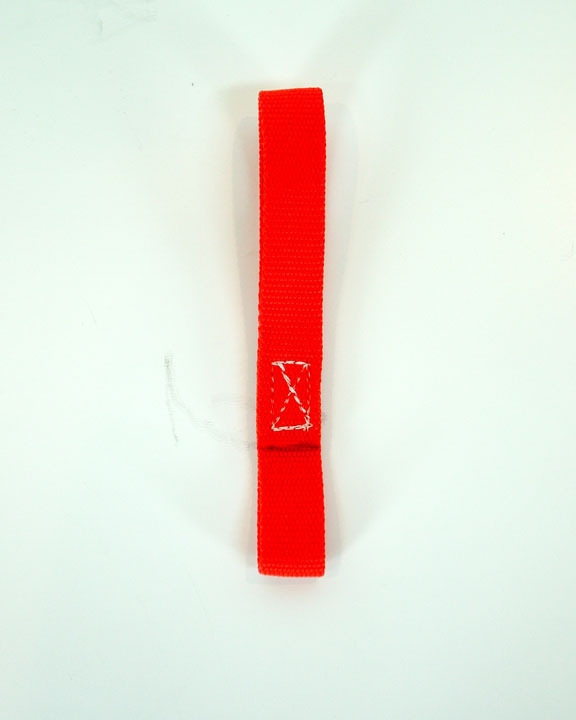 This is an awesome heavy duty strap. Total length is 8 inches, with two loops, and it's made from heavy duty orange webbing.