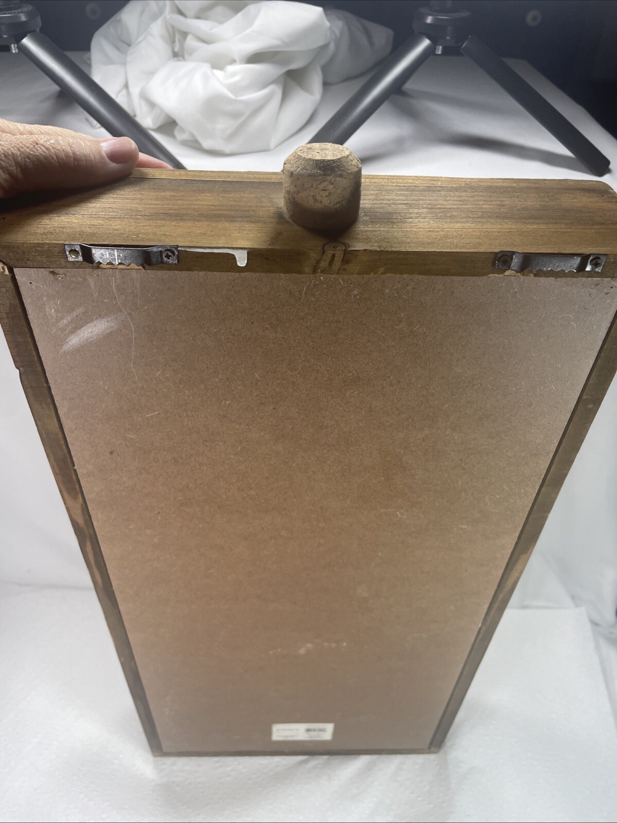 Pre-owned, good condition but does have some aging on the wood in areas and plastic front does have some scratches. See photos