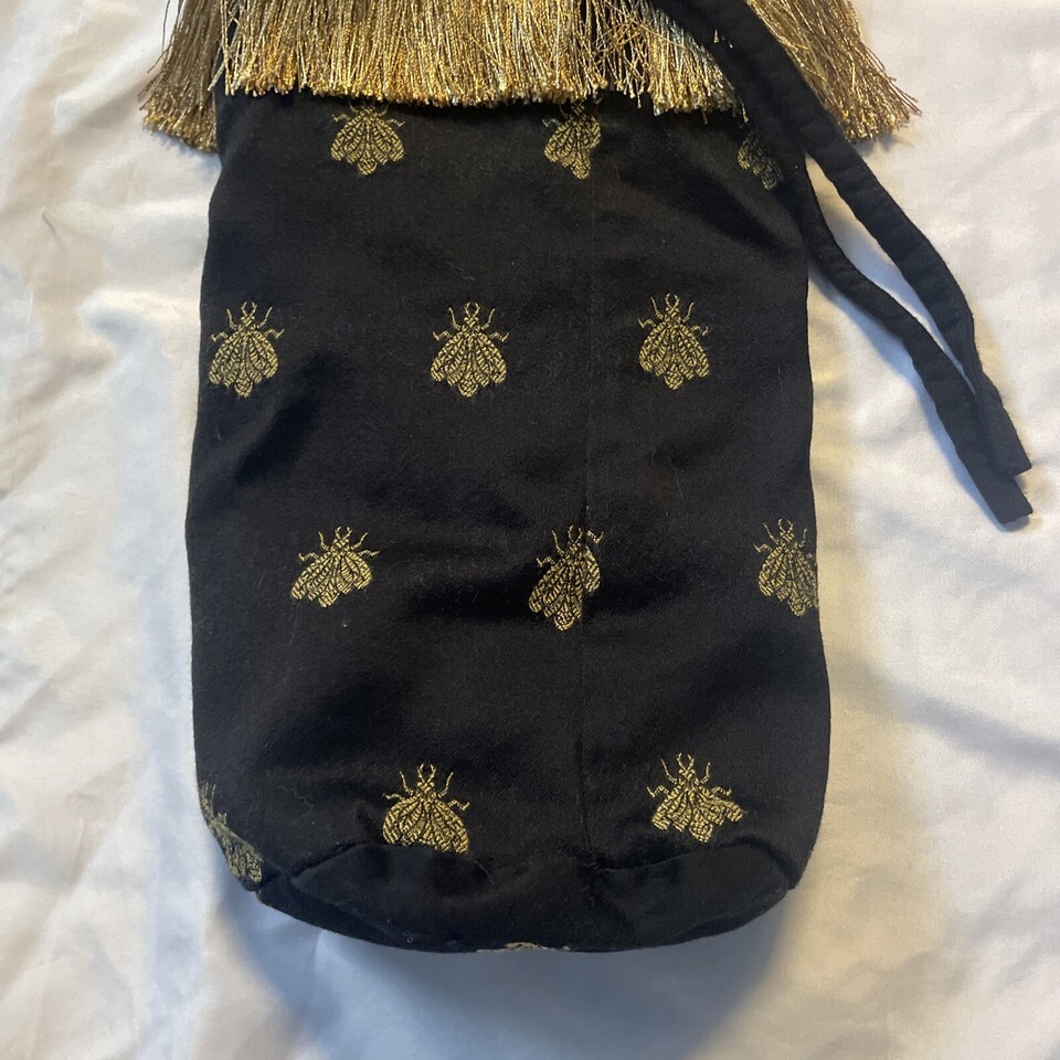- Wine Champagne Bottle Bag Cover Cooler Black Gold Fly Beetle Tassels 12”