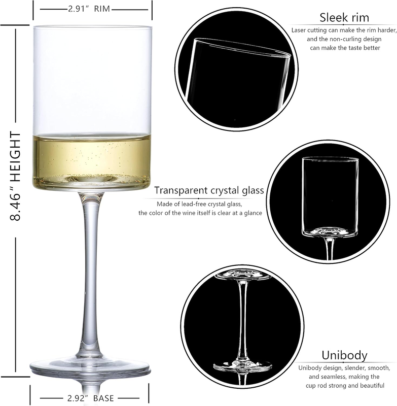 Handcrafted ? Each wine glass is hand-blown by an experienced master craftsman, by whom the edge is delicately polished and cut for a thin and smooth appearance to provide a better sense of touch for your lips and enhance the quality and flavor of the wine.