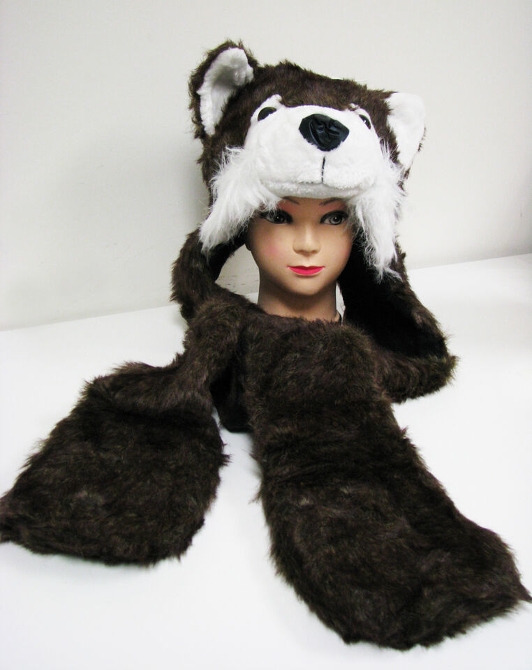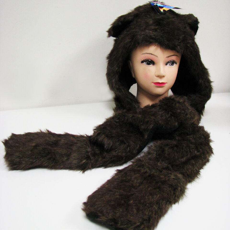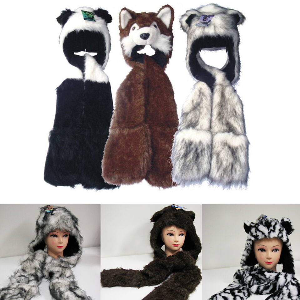 - Winter Hat Faux Fur Animal Cap Long Mitten Gloves Earmuff Scarf Warm ALL IN ON