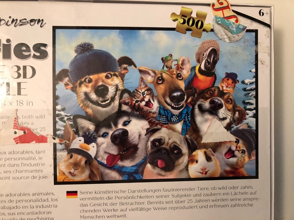 Winter Pets Selfie Prime 3D 500 Piece Puzzle Howard Robinson Design 24X18" New in Box. I do have more items listed and offer combined shipping