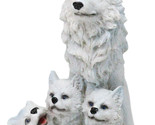 - Winter Snow White Wolf Mother Sitting with 3 Adorable Cubs Family Figurine Decor