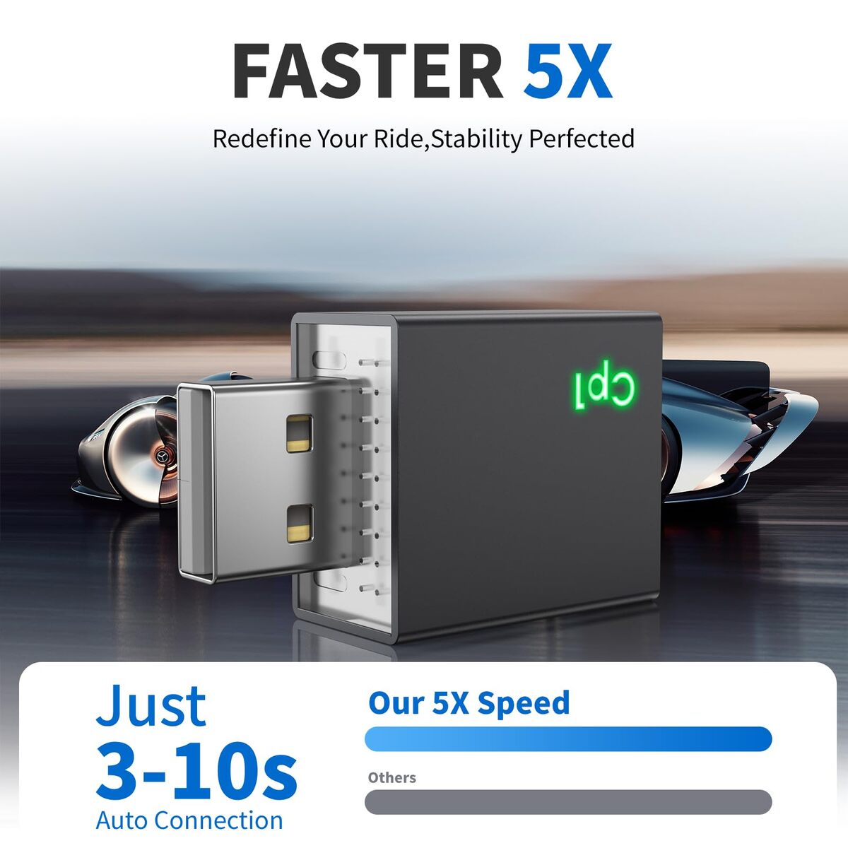 Stable Ultra-Low Lag Connection:Unlike other apple carplay wireless adapter that suffer from disconnections or lag, our advanced 5.8GHz WiFi and Bluetooth 5.X ensure ultra-fast response times. Less than 1 second delay for music, navigation or calls, which even on bumpy roads, the connection stays rock-solid, keeping your drive smooth.