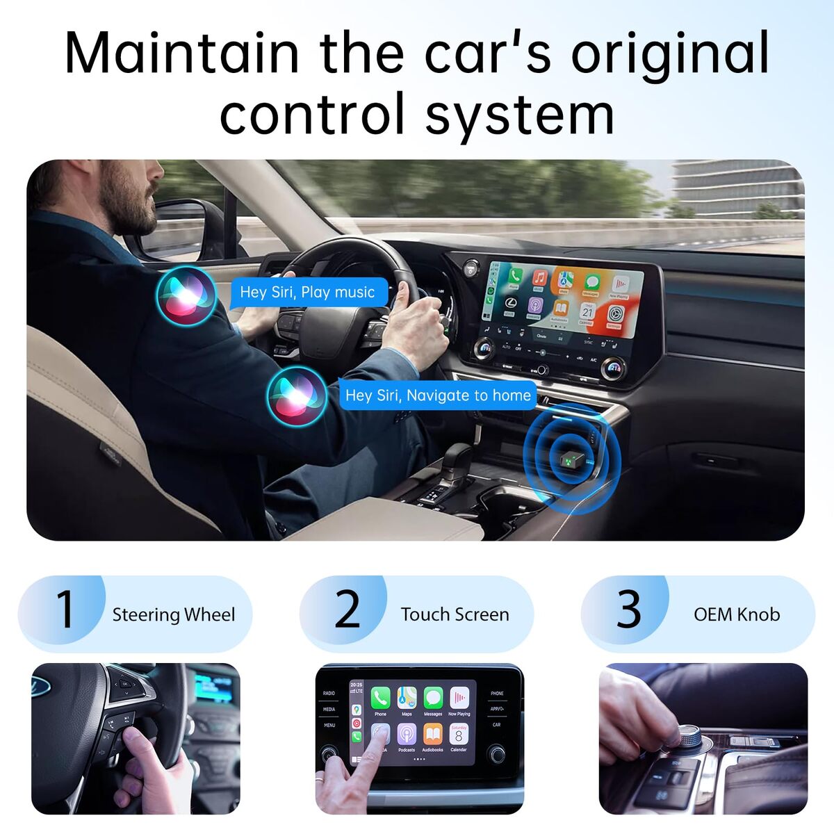 Instant Wireless and 3s Auto-Connect:Tired of plugging in your phone every time you drive? Our wireless apple carplay adapter turns your factory-wired CarPlay into a truly wireless experience. Just plug it in once, and next time, your phone automatically connects in 3 secondsno cables, no hassle!Making every drive seamless and enjoyable.