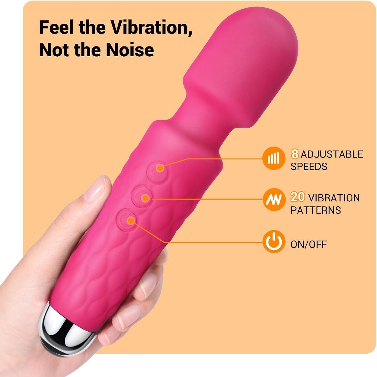 - Wireless Rechargeable Handheld Body Massager - 8 Speeds & 20 Patterns for Relief