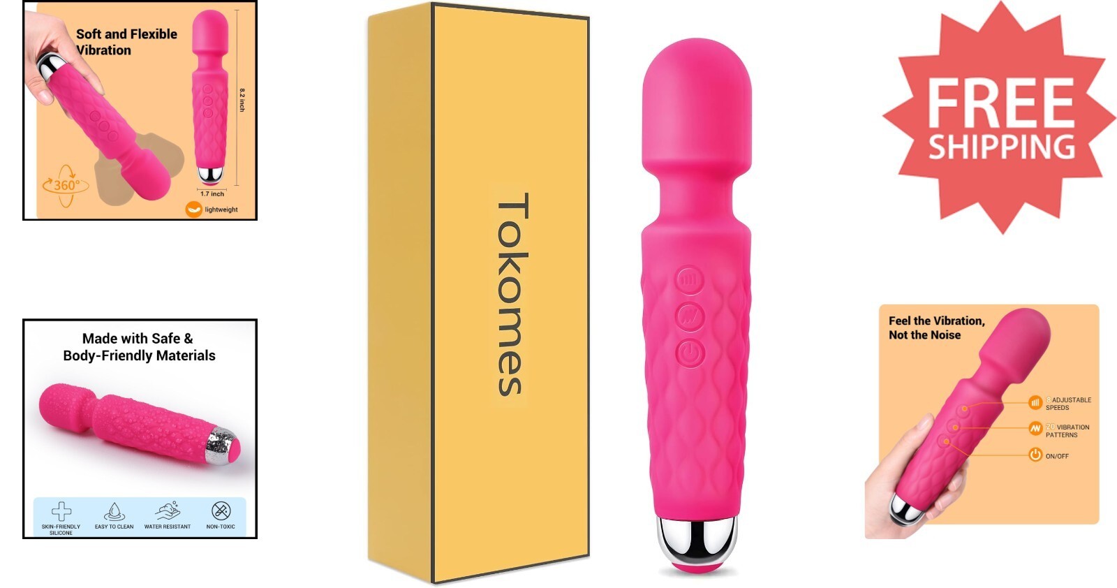 Experience ultimate relaxation with the Tokomes Handheld Massage Wand, featuring 8 targeted speeds and 20 rhythmic patterns. Its 360 rotating head delivers deep-kneading vibrations tailored to your needs, perfect for muscle relief after workouts or daily tensions. Crafted with body-safe, water-resistant silicone, it?s easy to keep clean with simple soap and water. Compact and wireless, this portable device fits seamlessly into your bag for use anytime, anywhere. With quick USB charging?taking just 2 hours?you'll enjoy uninterrupted sessions, aided by an LED indicator signaling full power. Your satisfaction is our priority? out to us with any concerns, and we?ll do our best to assist. To ensure fast and reliable delivery, we work with multiple fulfillment partners and suppliers. Depending on availability and location, your order may ship from different warehouses or arrive in packaging that varies from item to item. Tracking details are typically provided shortly after shipment, and customer satisfaction remains our top priority. Please note that due to carrier policies and regional regulations, certain items may not be eligible for delivery to specific states or territories.