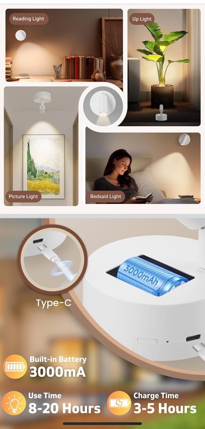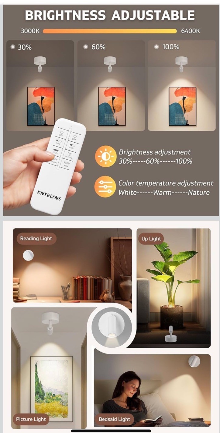- Wireless Spot Lights Indoor (2 Pack), Uplighting Indoor with Remote, Recharge...