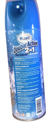 Introducing the Wizard 2 in 1 Smoke Odor Eliminator and Air Freshener in the refreshing scent of Clean Linen. This modern aerosol spray can is perfect for any room, whether it's your bathroom, garage, or even the garbage area. With its powerful formulation, this eco-friendly spray is spill-proof, residue-free, and lasts for a long time.
