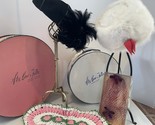 Black Velvet feather hat Comes with Pink hatbox and Gold Stand (Candle stand)