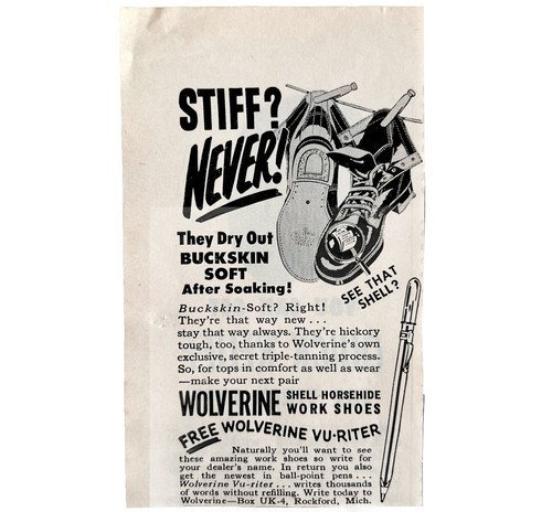 Wolverine Buckskin Leather Work Boots 1952 Advertisement Footwear Shell DWEE9