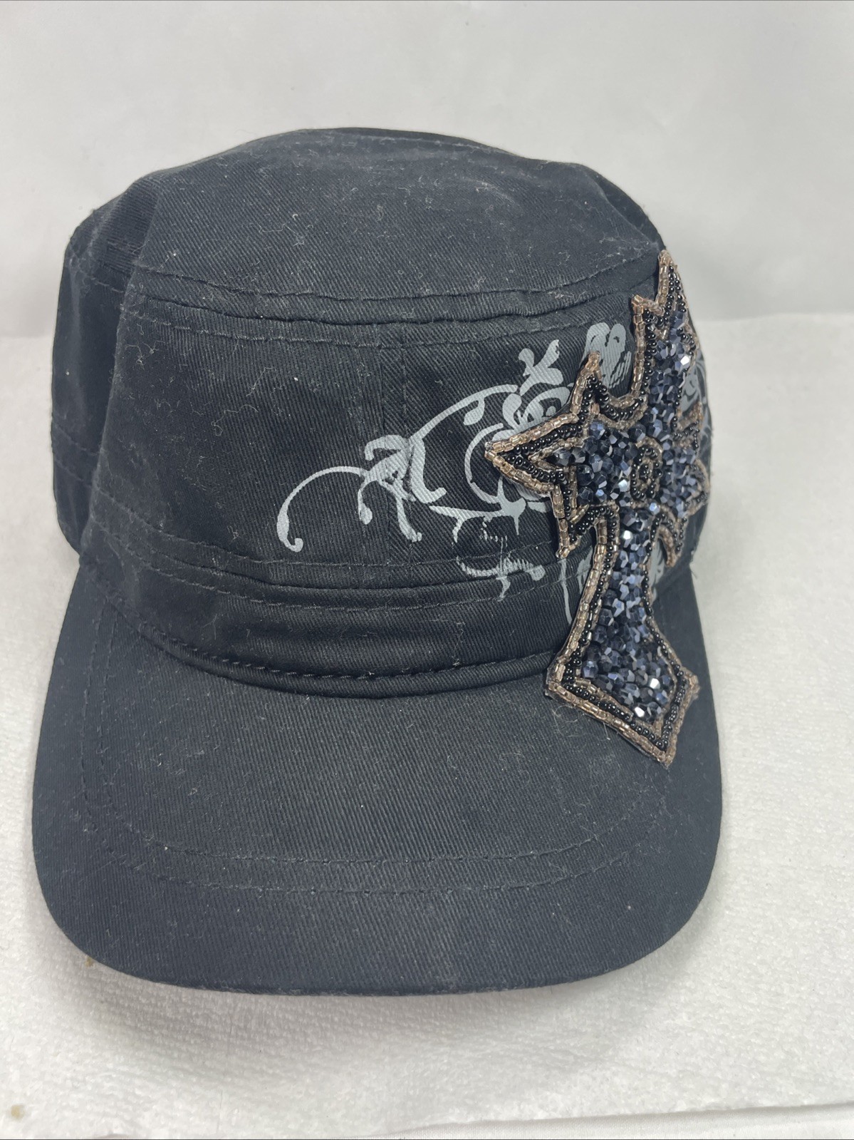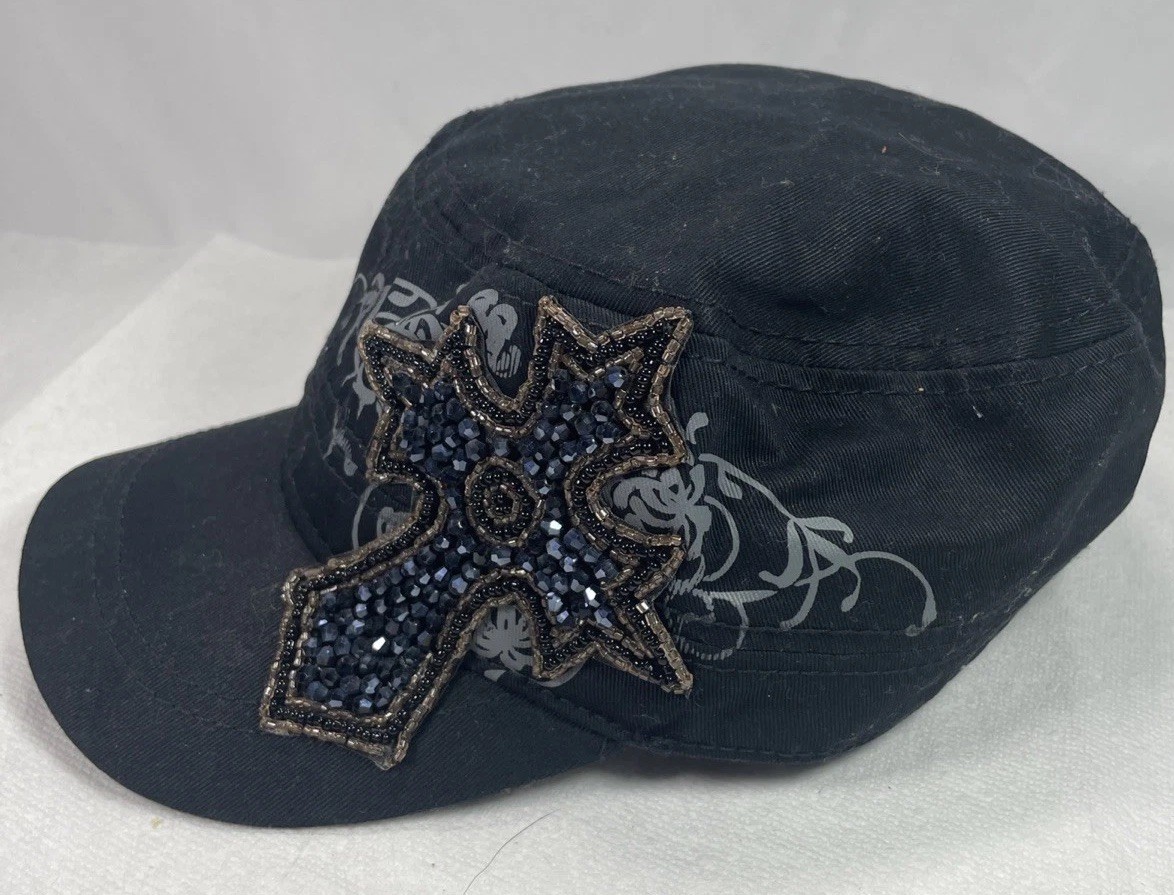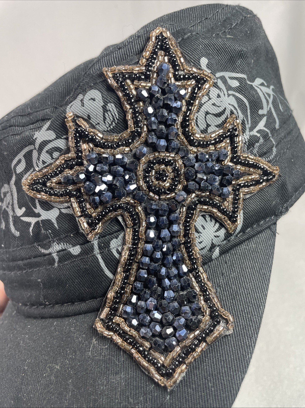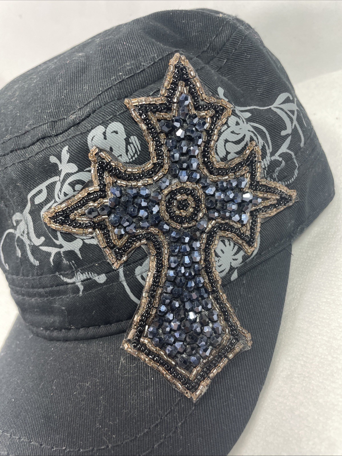 - Woman’s Cap Cross Embellished Beaded Grunge Hat