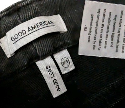 - Woman's Good American Good Leg Jeans Sz 2/26 Black/Gray Wash Distressed MINT CND
