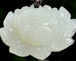 - Women 925 Sterling Silver Carved White Jade Open Bud Lotus Flower Necklace