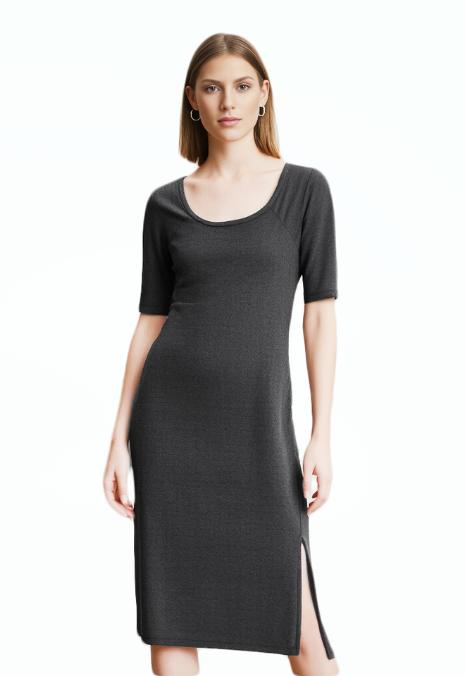 Women Dress Love Cameron Women Teens Crew Neck 3/4 Sleeve Midi Size M Dark Gray