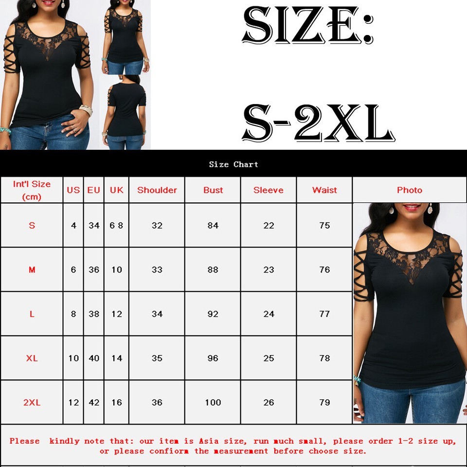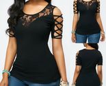 - Women Lace T-shirt Solid Color Mesh Round Neck Short Sleeve Bandage Hollow Out