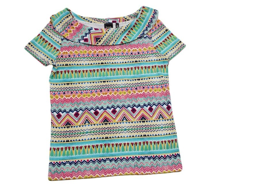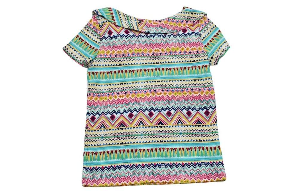 - Women Top Geometric Print Cotton Short Sleeve Blouse Size S Paradise Pink