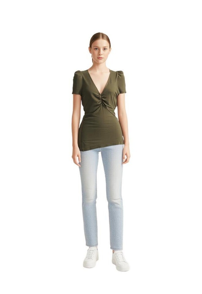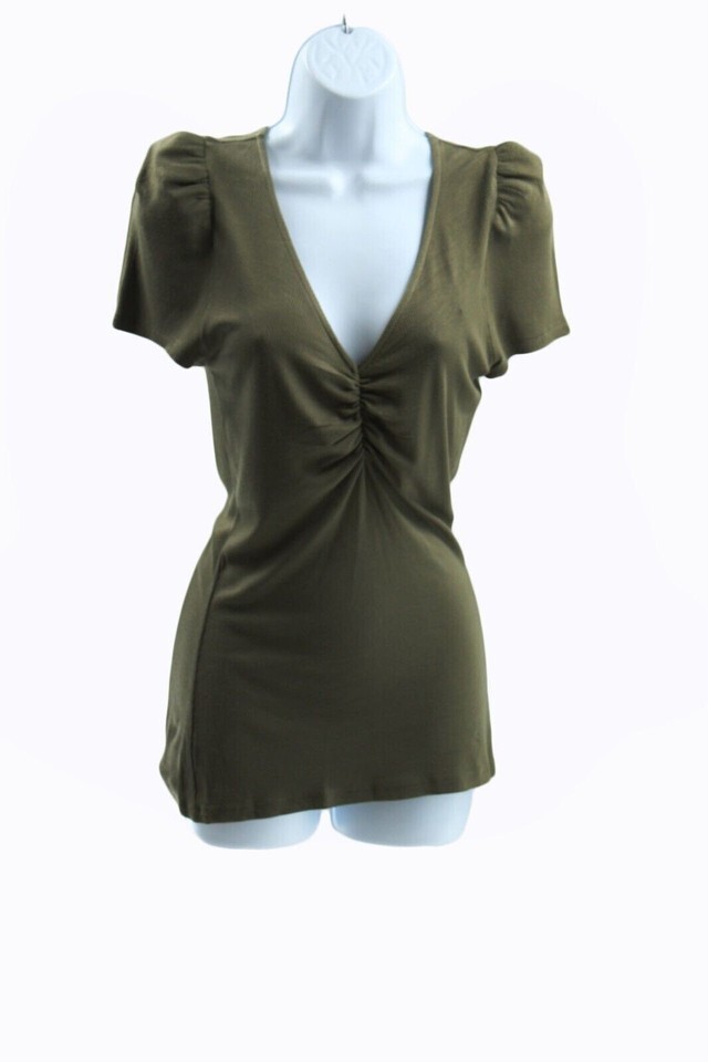 This Inc International Concepts top features a ribbed texture and ruched detailing in a beautiful hunter green color. The short sleeve top has a V-neckline and is made from a blend of rayon and spandex materials for a comfortable fit. It is a regular size small and solid patterned. Perfect for any occasion, this top is a great addition to any wardrobe. The top is designed for women and belongs to the category of Women's Clothing. It is a type of top that is suitable for any casual or formal event. Add this Inc International Concepts top to your collection today!