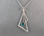A WOMENS VINTAGE ESTATE STERLING SILVER MODERNIST PENDANT WITH NECKLACE THAT WAS MADE IN ISRAEL. NECKLACE MEASURES 18" LONG, AND IS ADJUSTABLE TO 16". THE PENDANT MEASURES 2" BY 1". TOGETHER THEY WEIGH 4.8g. STONE APPEARS TO BE EILAT. WOULD MAKE A NICE GIFT FOR THAT SPECIAL SOMEONE ANY QUESTIONS PLEASE DO NOT HESITATE TO ASK.